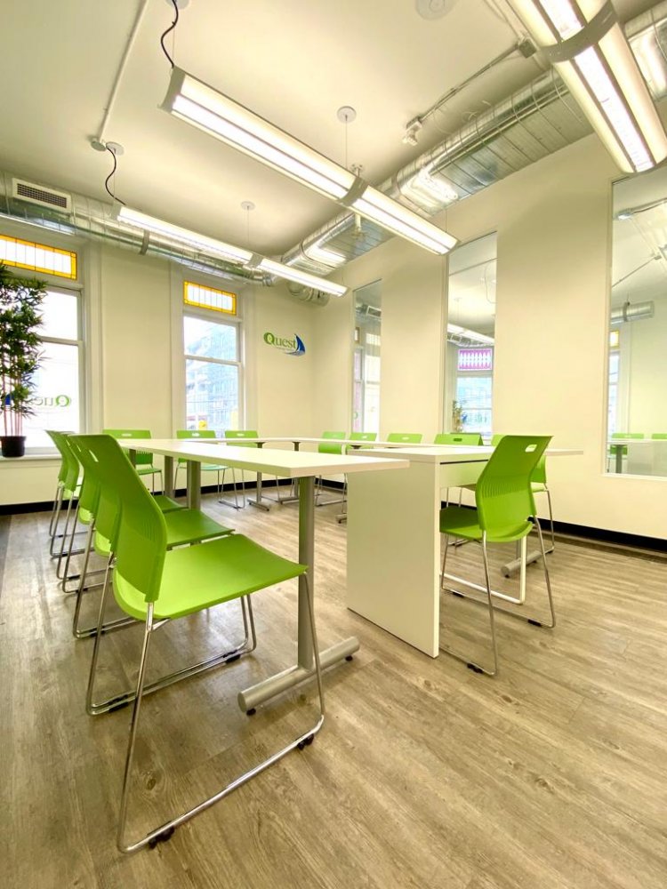 Na Quest, escola localizada no centro de Toronto, oferecemos um currículo único e inovador, especialmente focado no desenvolvimento das habilidades de comunicação. Nossos cursos são flexíveis e adaptados às necessidades dos alunos, com opções de 20, 24, 28 ou 32 aulas semanais.